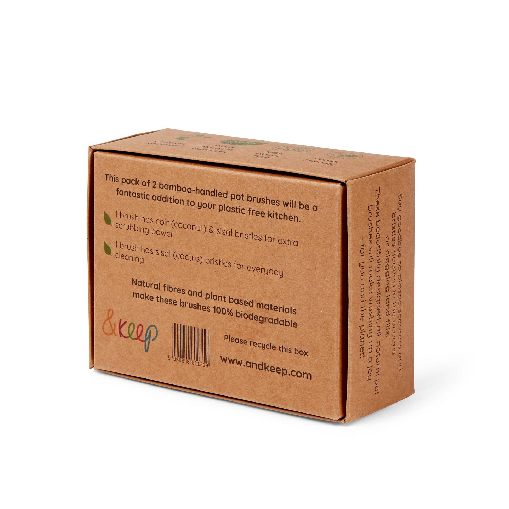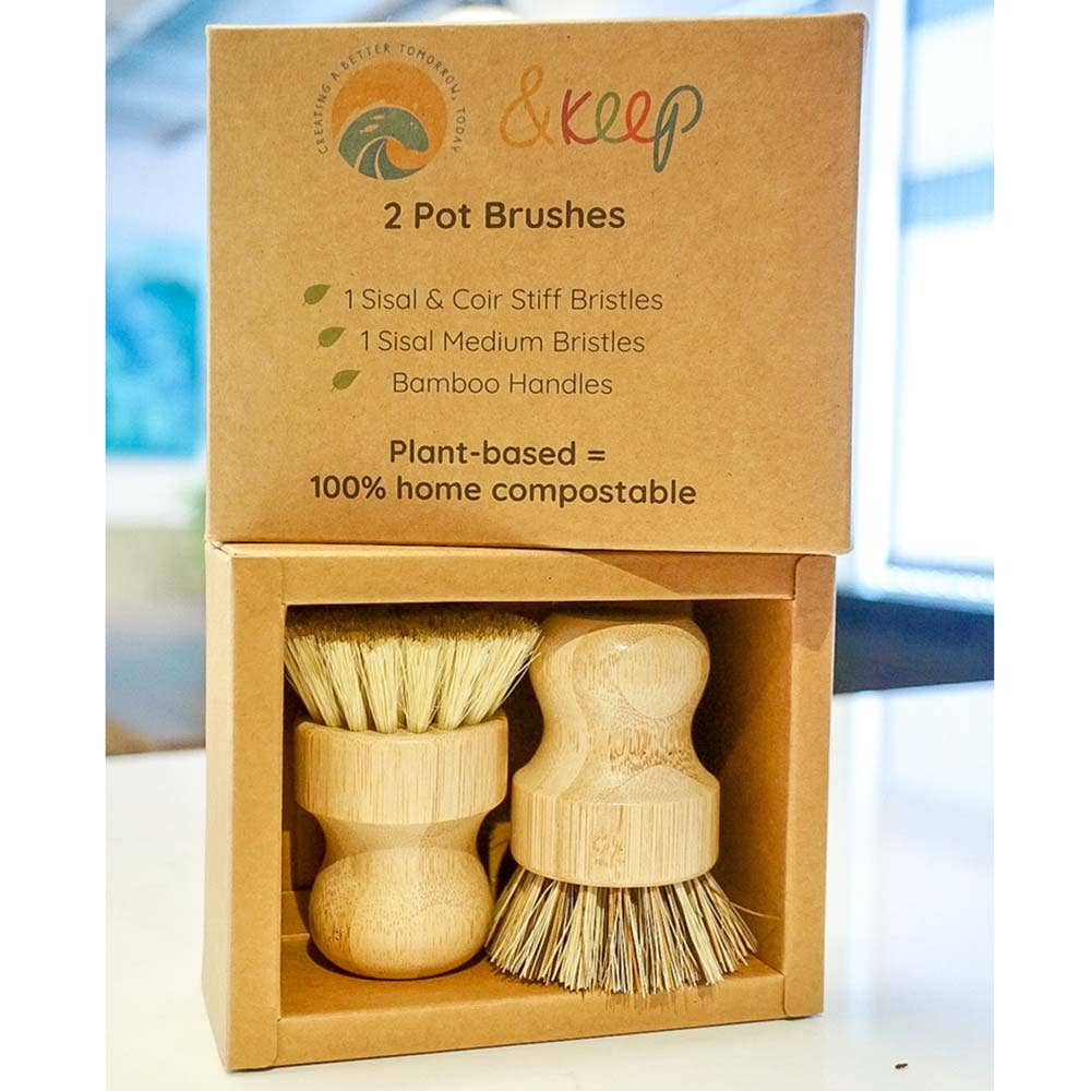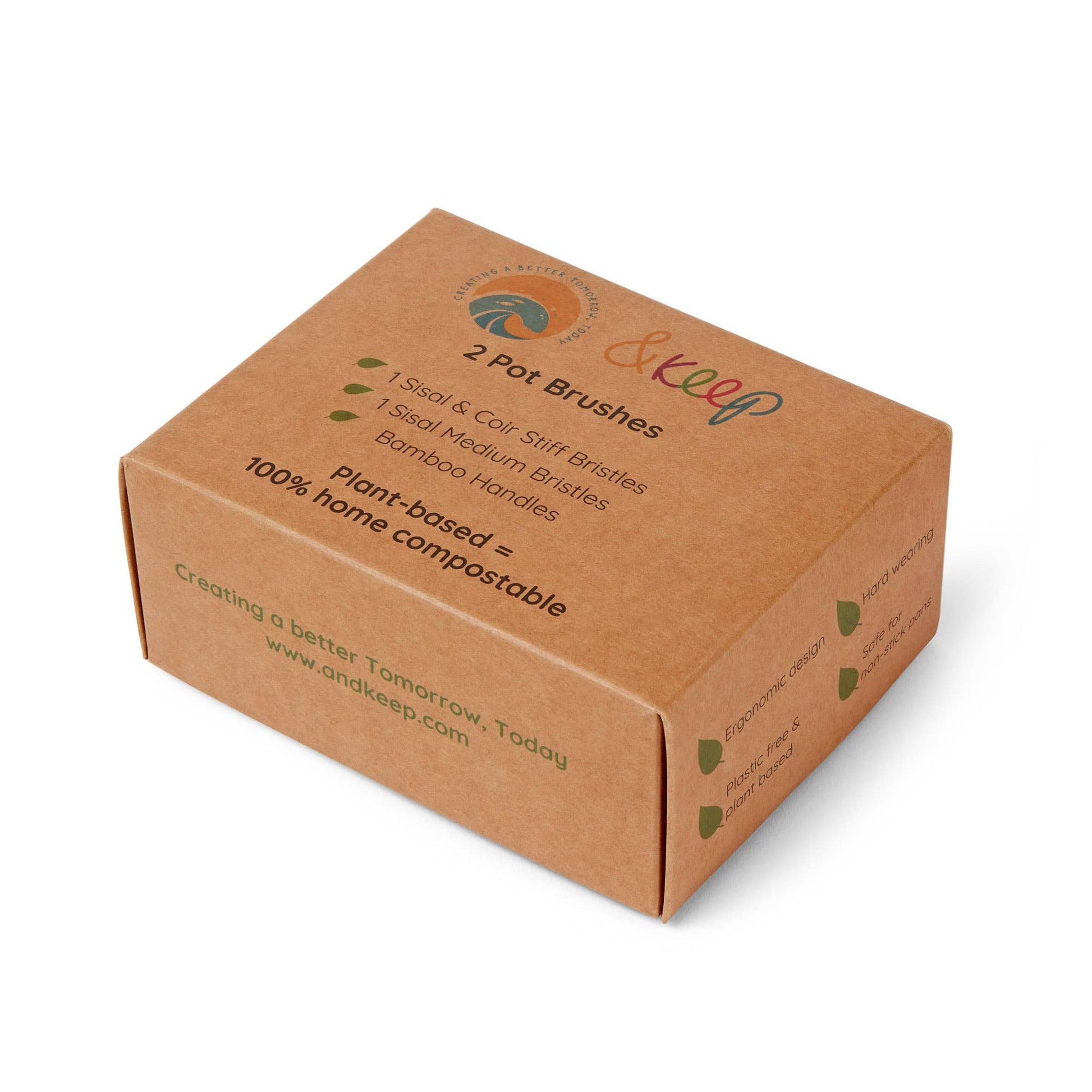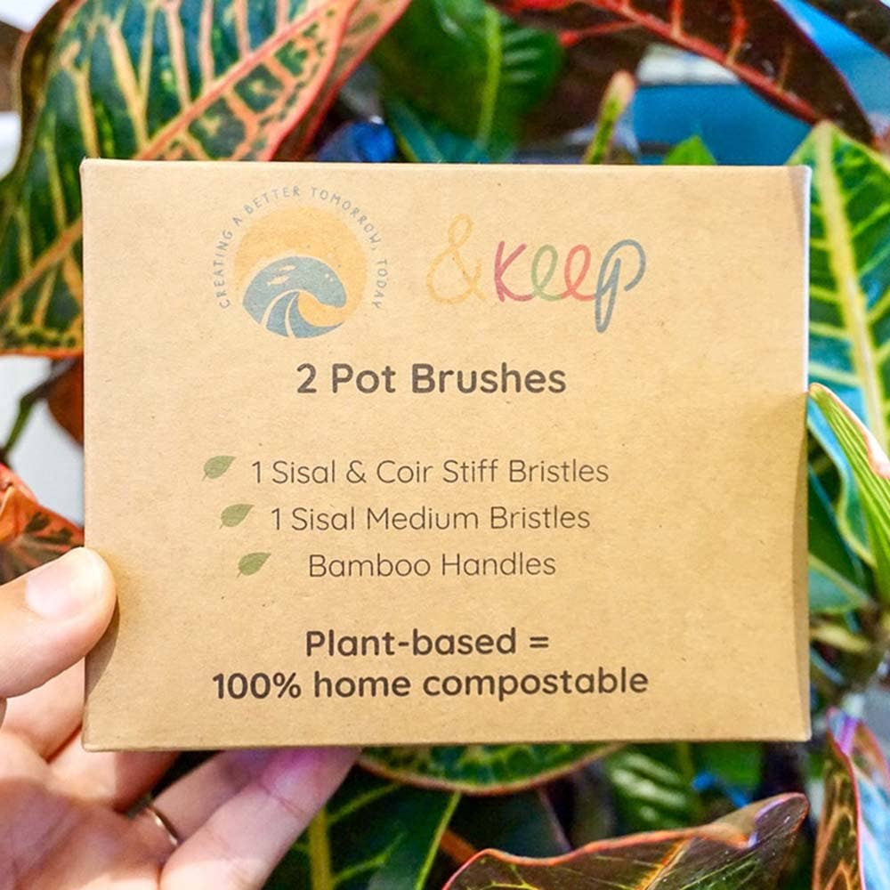 Verdant Goods Co. offers the &Keep Pot Brush in a Box of 2, featuring a Medium & Stiff variant for versatile cleaning solutions. These brushes are designed to meet various cleaning demands effortlessly and sustainably.